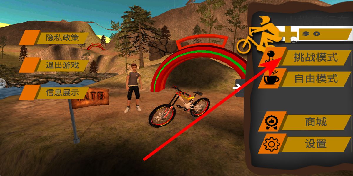 1、進(jìn)入游戲后,點(diǎn)擊繼續(xù)按鈕開啟游戲,在彈出菜單選挑戰(zhàn)模式或自由模式,挑戰(zhàn)模式有明確目標(biāo),自由模式可以自由隨意騎行探索。