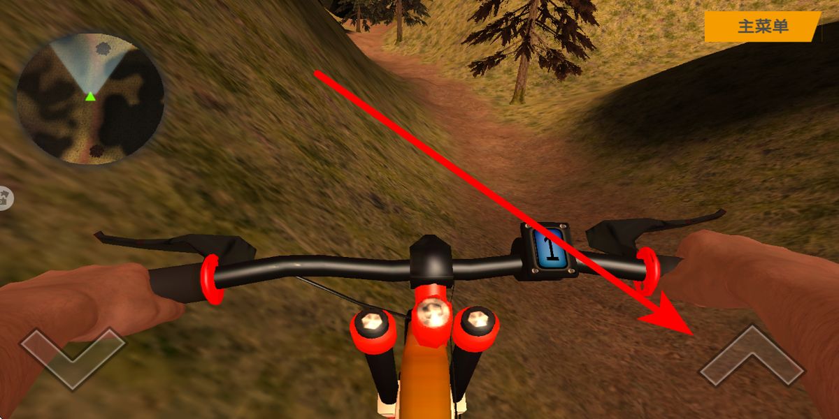 2、選好想要游玩的模式進(jìn)入賽道,通過屏幕上的虛擬按鍵操作,如點(diǎn)擊對(duì)應(yīng)按鍵控制自行車前進(jìn)和轉(zhuǎn)向,利用地形和技巧完成騎行。