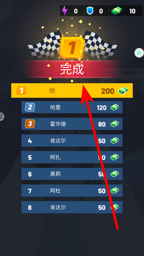 3、順利沖過(guò)終點(diǎn)線后,查看最終排名與獎(jiǎng)勵(lì),名次越是靠前獎(jiǎng)勵(lì)便越豐厚,使用獎(jiǎng)勵(lì)對(duì)摩托進(jìn)行升級(jí),或解鎖全新賽車手,提升后續(xù)競(jìng)速比拼能力。