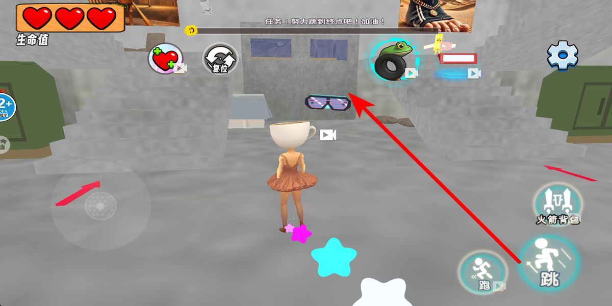 3、任務(wù)目標(biāo),像努力跳到終點(diǎn)等,規(guī)劃移動(dòng)路線,遇到復(fù)雜障礙組合,先觀察規(guī)律,再精準(zhǔn)操作角色躲避,同時(shí)注意生命值,合理使用道具確保順利通關(guān)。