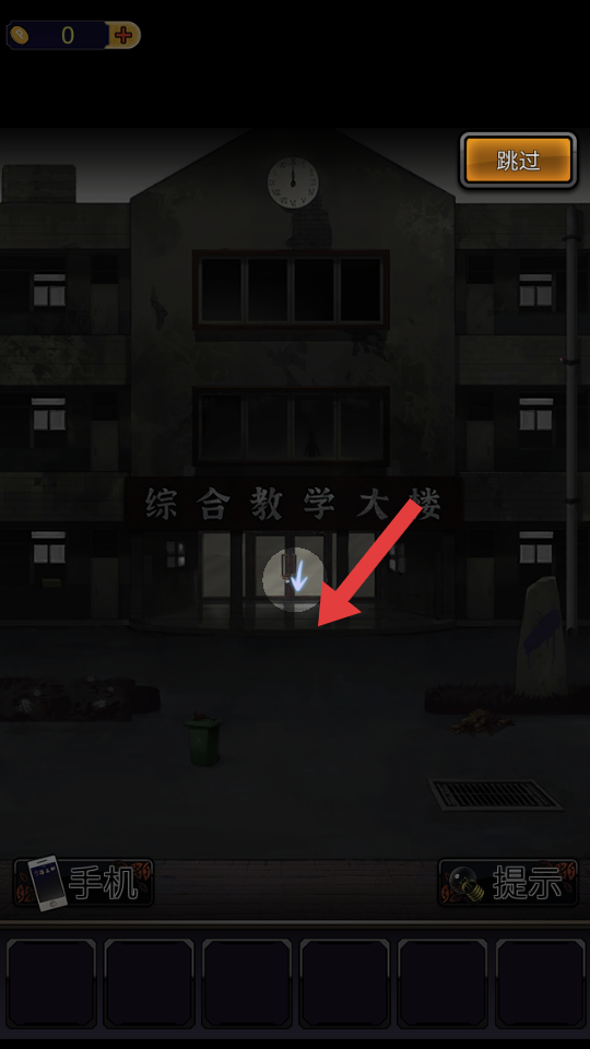 3、根據(jù)箭頭指引,點(diǎn)擊綜合教學(xué)大樓入口,進(jìn)入建筑內(nèi)部,開啟恐怖解謎探索,留意場(chǎng)景細(xì)節(jié)找線索。