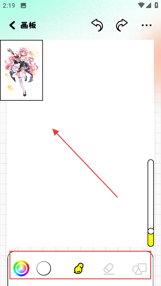 2、進入畫板界面后,左側有參考的動漫形象,中間是空白的畫板區(qū)域,底部有顏色選擇,不同形狀的畫筆等工具,你可以挑選喜歡的顏色和畫筆形狀,在畫板上自由創(chuàng)作。