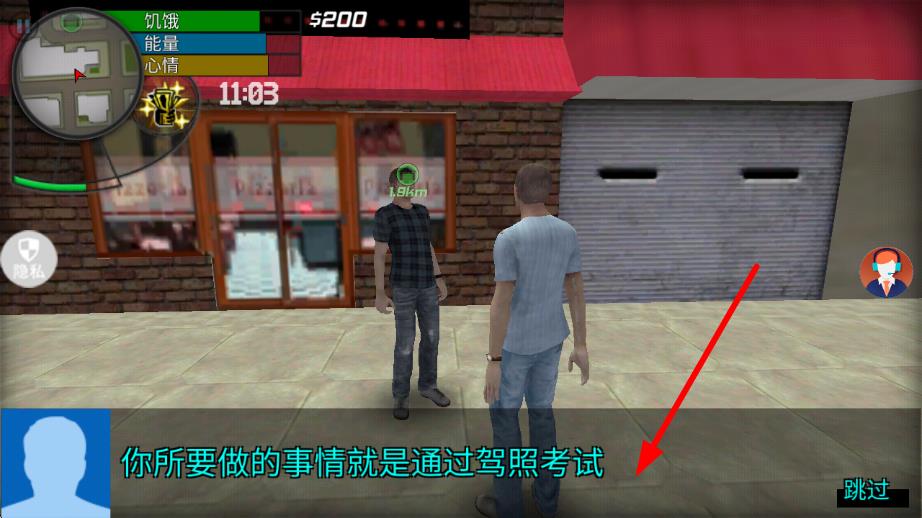 1、在游戲初始界面,與NPC對(duì)話接取通過(guò)駕照考試任務(wù),按指引前往黃色出租車處,點(diǎn)擊上車開(kāi)始駕照考試流程。