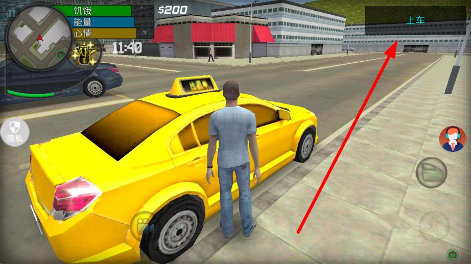 2、在開(kāi)放世界場(chǎng)景中,找到黃色出租車后,點(diǎn)擊界面提示的上車按鈕,進(jìn)入車輛駕駛環(huán)節(jié),按規(guī)則完成駕照考試相關(guān)操作。