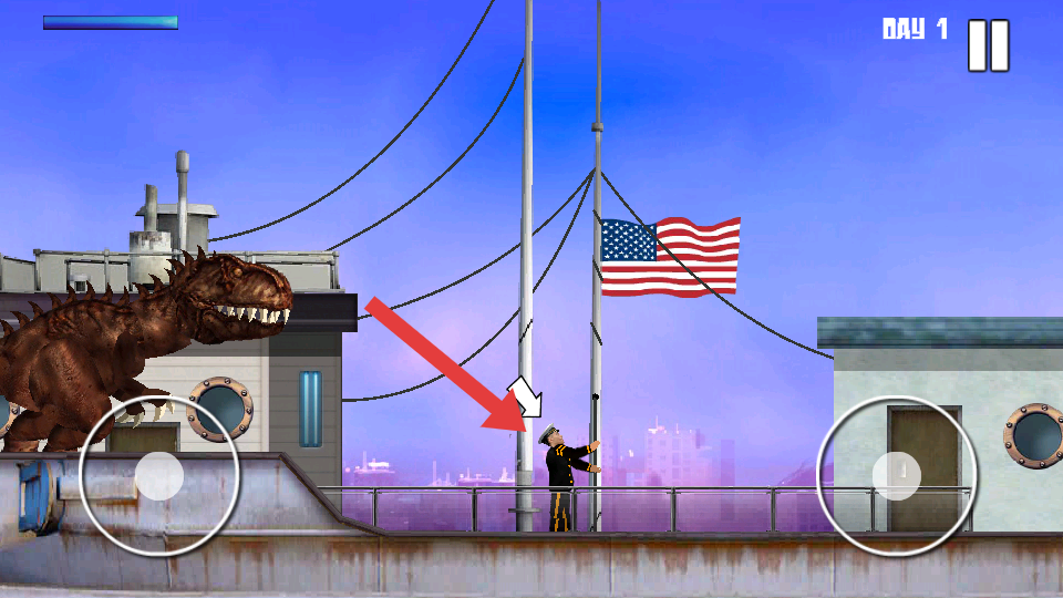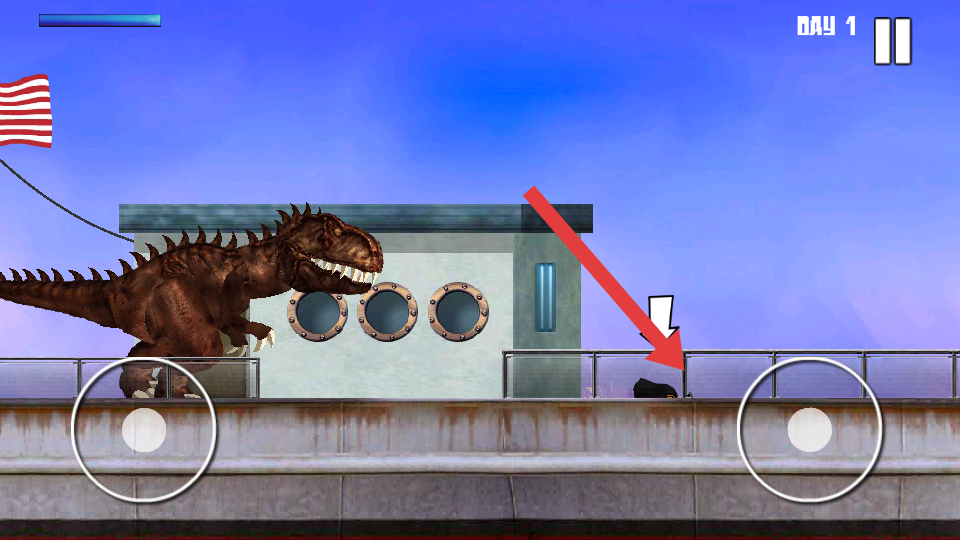 2、沿箭頭指引靠近人類目標(biāo),點擊攻擊按鈕,捕食人類積累分?jǐn)?shù),注意避開場景中可能的障礙建筑、圍欄。