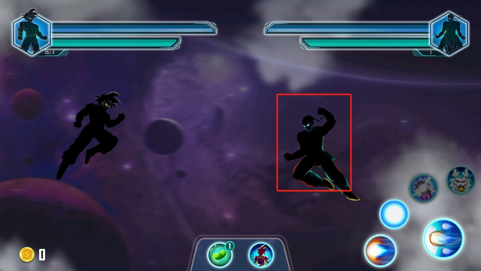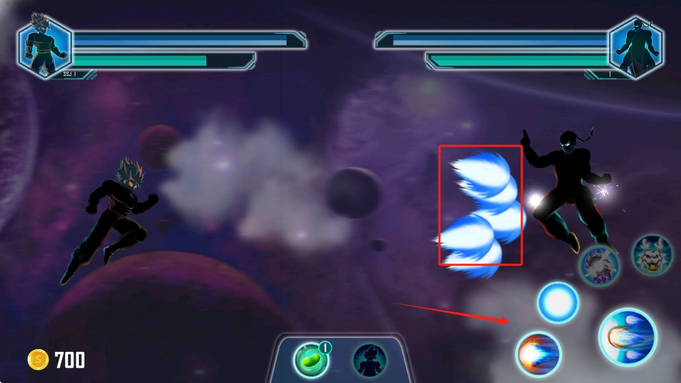 2、當(dāng)對手處于攻擊前搖時,點擊右側(cè)技能按鍵,釋放藍(lán)色光波技能,對敵方造成傷害,同時注意自身血量。