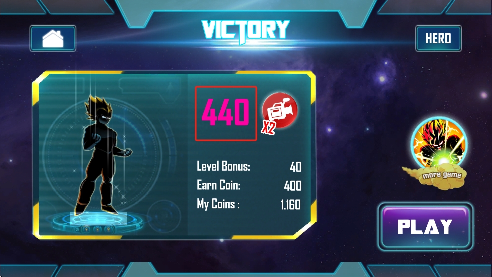3、戰(zhàn)勝對手后,戰(zhàn)場煙霧漸散,界面彈出戰(zhàn)斗得分,此時可點擊PLAY按鈕,即可繼續(xù)參與下一場戰(zhàn)斗。