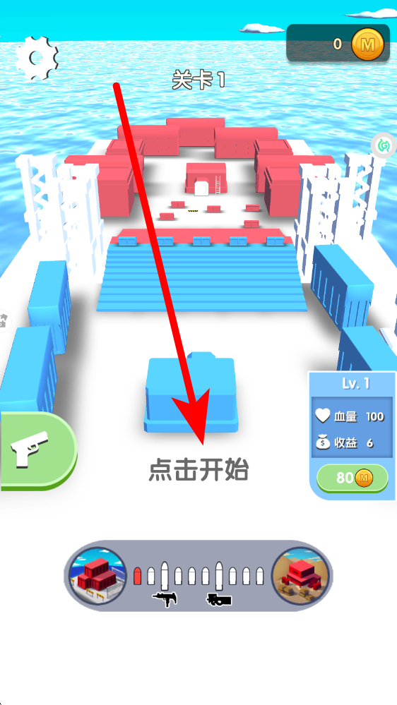 1、關(guān)卡啟動點(diǎn)擊界面點(diǎn)擊開始游玩進(jìn)入對應(yīng)關(guān)卡,戰(zhàn)前可以查看武器、血量及收益的信息,確認(rèn)后開啟戰(zhàn)斗,迎接敵人波次攻擊。