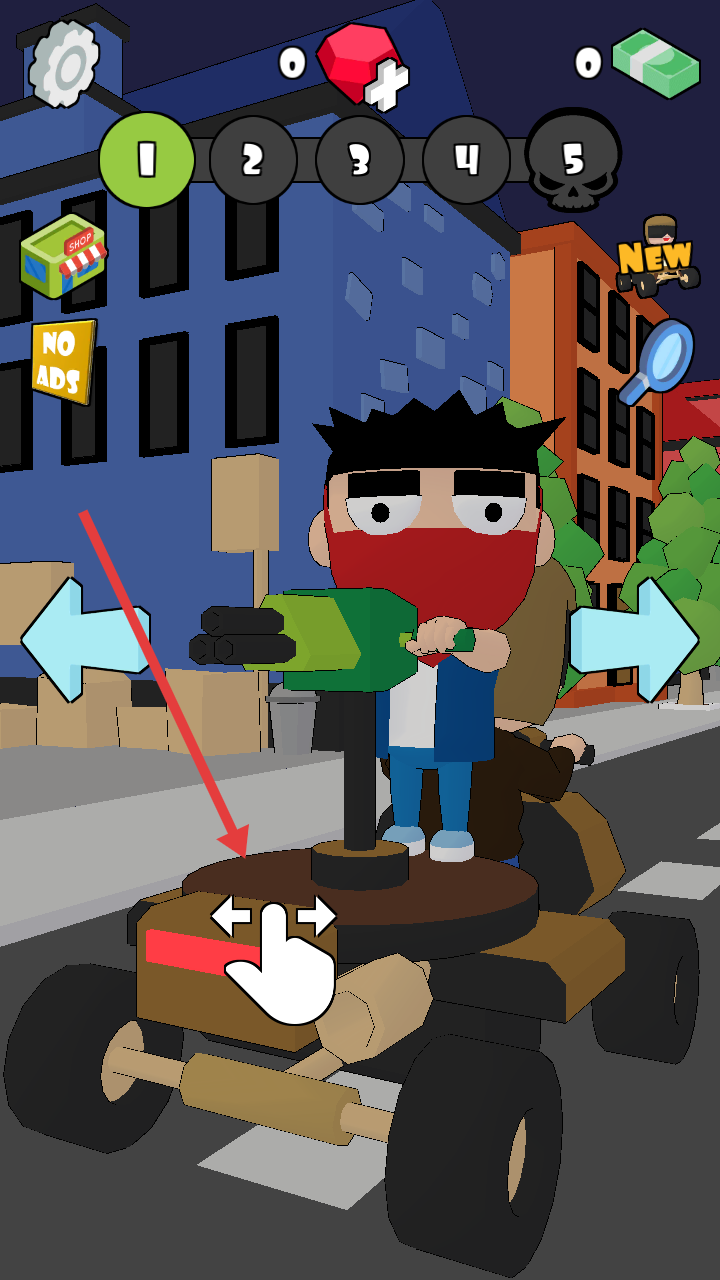 1、點擊車身兩側(cè)箭頭樣式的操作按鈕,精準操控載具行進方向,同時借助車上武器,提前瞄準,為即將遭遇的僵尸圍堵場景做好應(yīng)對準備。