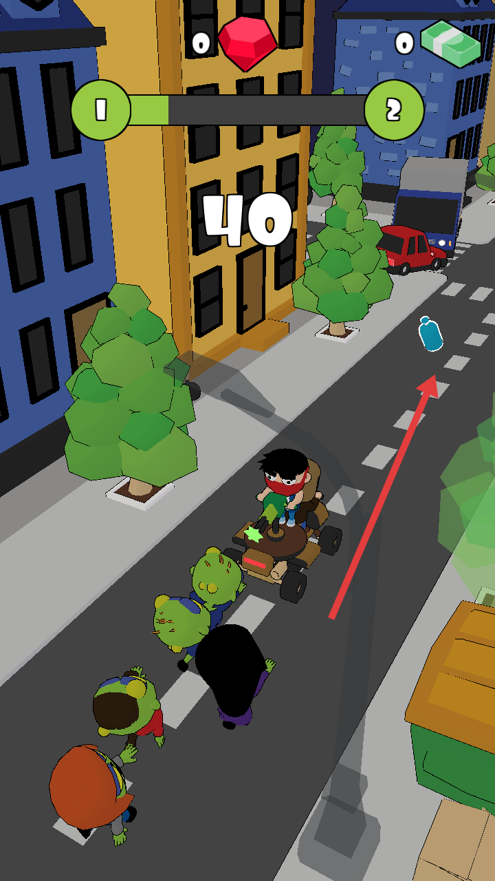 2、載具行駛過程中,緊盯道路狀況,靈活避讓僵尸群體,發(fā)現(xiàn)藍色道具如水瓶及時拾取,借助道具效果,維持推進節(jié)奏,提升生存幾率與得分效率。