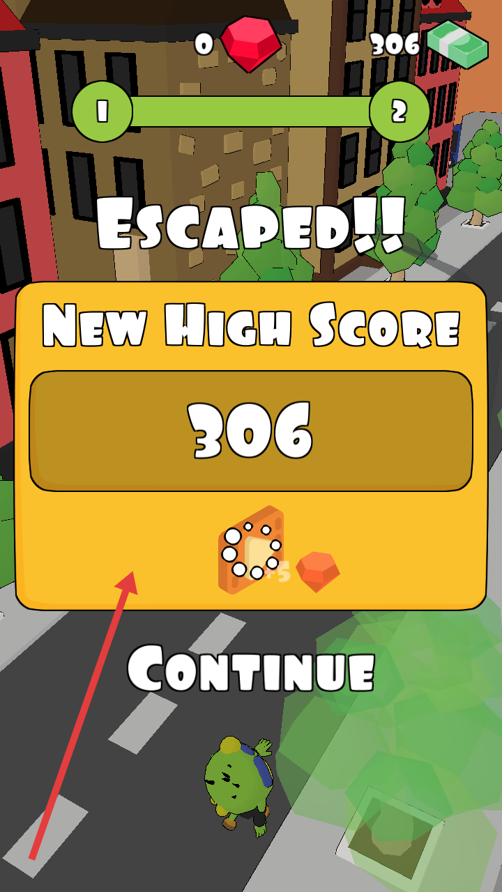 3、成功逃脫僵尸追擊后,依據(jù)結(jié)算得分,點擊CONTINUE按鈕進入下一關(guān)卡,若挑戰(zhàn)失敗,重新開始,積累獎勵用于強化載具性能與武器威力。