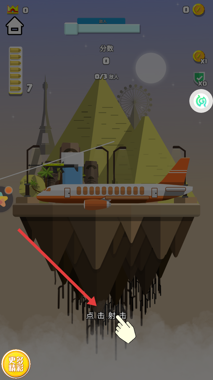 2、戰(zhàn)斗時,依據(jù)點擊射擊提示,瞄準場景中敵人,快速射擊,完成消滅3個敵人目標。