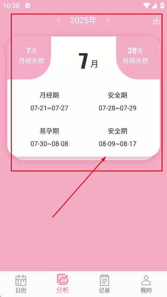 3、查看月經天數(shù)與周期天數(shù),以及月經期,易孕期,安全期時間區(qū)間,借助這些數(shù)據(jù),掌握身體周期規(guī)律,做好健康管理。