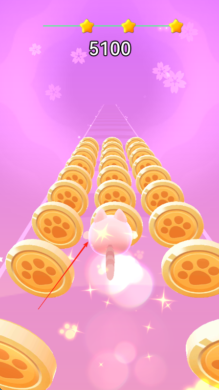 3、讓小貓?jiān)诮饚抨囂S、精準(zhǔn)踩金幣獲分?jǐn)?shù)、積累到一定分?jǐn)?shù)完成關(guān)卡目標(biāo)即可通關(guān)。