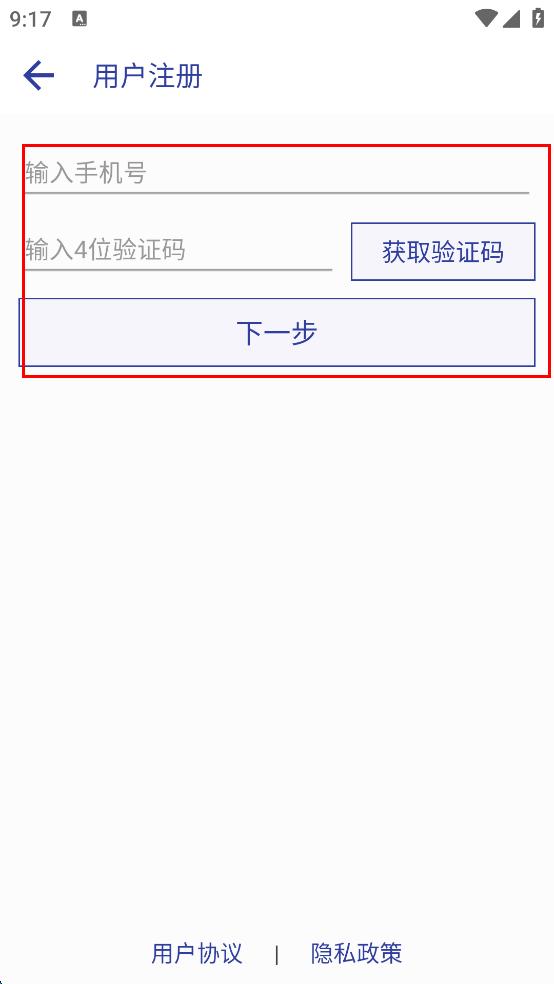 4、輸入手機號,點擊“獲取驗證碼”,后輸入驗證碼,點擊“下一步”完成注冊。