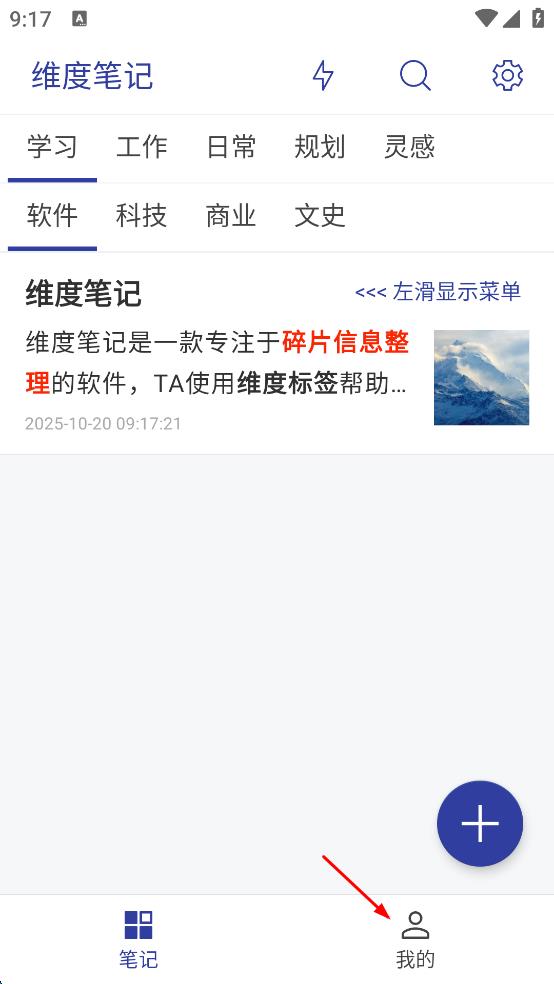 1、打開維度筆記應用,進入后點擊頁面右下角“我的”選項。