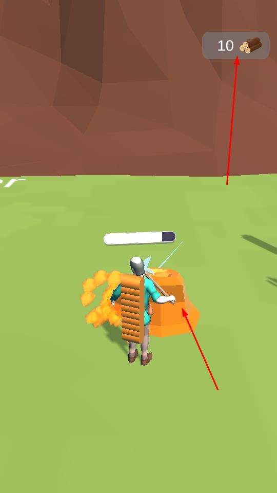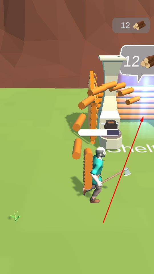 1、操控角色砍伐樹木,收集木材資源,留意右上角數(shù)量變化,積累基礎(chǔ)物資。