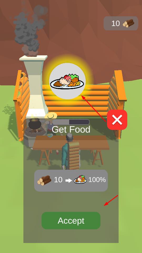 3、在交互界面,消耗指定數(shù)量木材,點(diǎn)擊Accept按鈕,制作食物獲取增益。