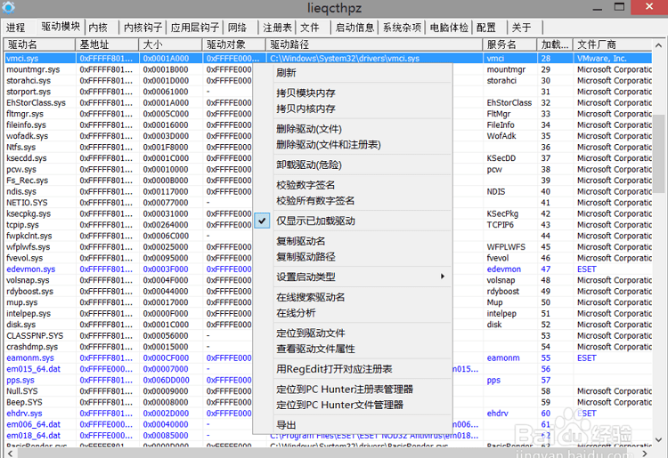 11.ssdt、shadow ssdt、fsd、kbd、tcpip、classpnp、atapi、acpi、scsi、idt信息查看,并能檢測(cè)和恢復(fù)ssdt hook和inline hook