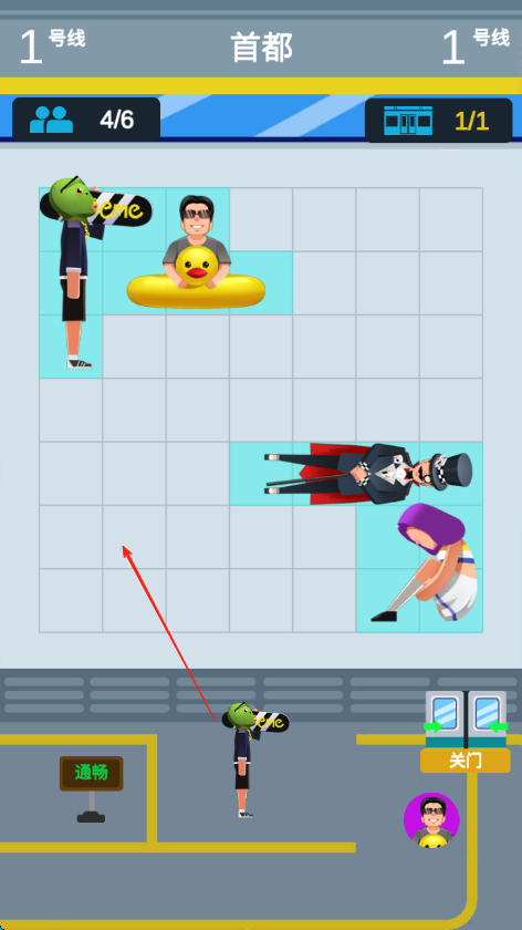 2、進(jìn)入站臺布局,點(diǎn)擊紅箭頭指向的乘客,將其拖拽到車廂對應(yīng)格子,合理規(guī)劃空間,逐步載入乘客。