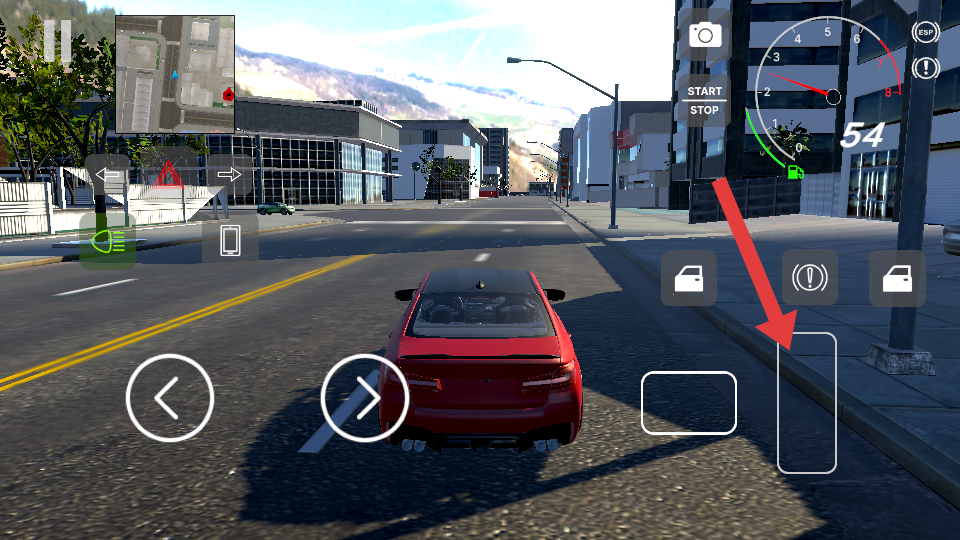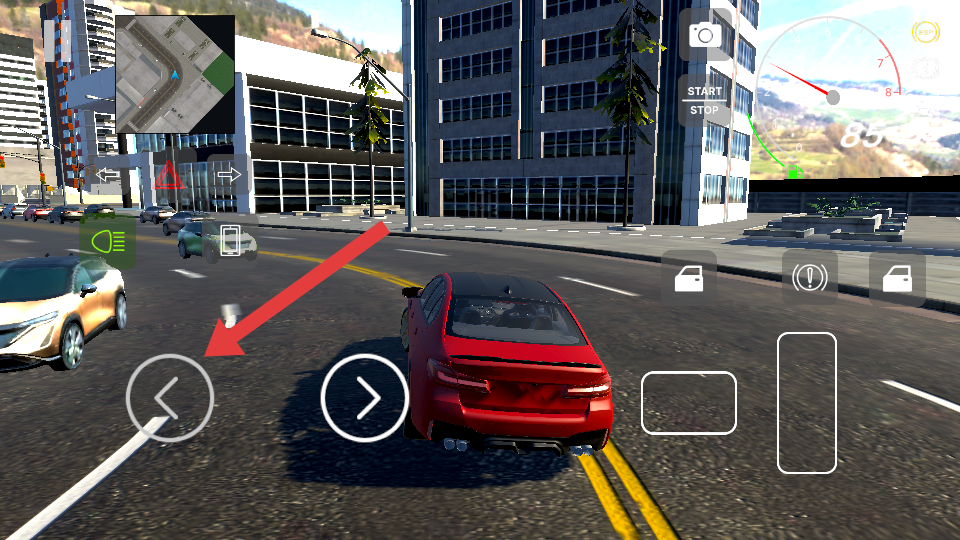 1、進入游戲后,利用左側(cè)左右箭頭按鈕控制車輛轉(zhuǎn)向,通過下方按鍵操作加速與剎車,快速熟悉基礎(chǔ)駕駛操作邏輯。
