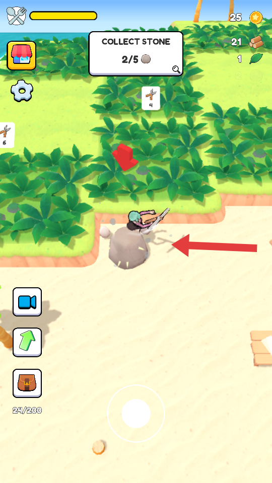 2、當(dāng)任務(wù)切換到COLLECT STONE,依據(jù)頁(yè)面地圖指引與紅色的箭頭提示,找到石塊所在的區(qū)域。