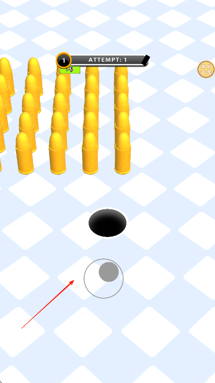1、拖動(dòng)下方灰色圓環(huán),控制黑洞移動(dòng)方向,按紅箭頭引導(dǎo)黑洞靠近黃色彈藥堆。