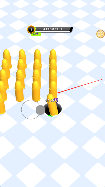 2、在過(guò)程當(dāng)中要讓黑洞吸附黃色彈藥,獲取+1.0等增益,繼續(xù)操控黑洞收集更多彈藥。