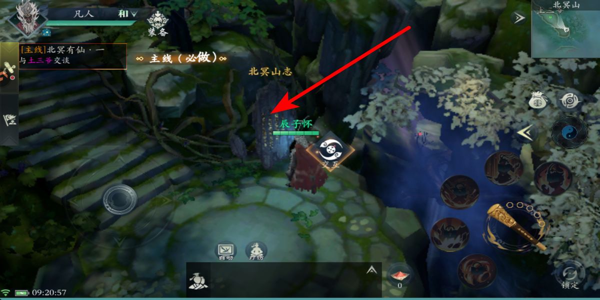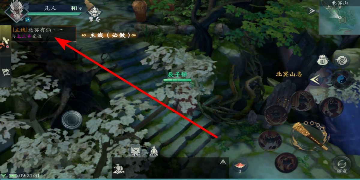 1、接取任務(wù)后,界面左側(cè)會顯示北冥有仙一與土三爺交談的提示,此時需跟隨任務(wù)指引的箭頭或地圖標(biāo)識,前往北冥山區(qū)域定位目標(biāo)NPC。
