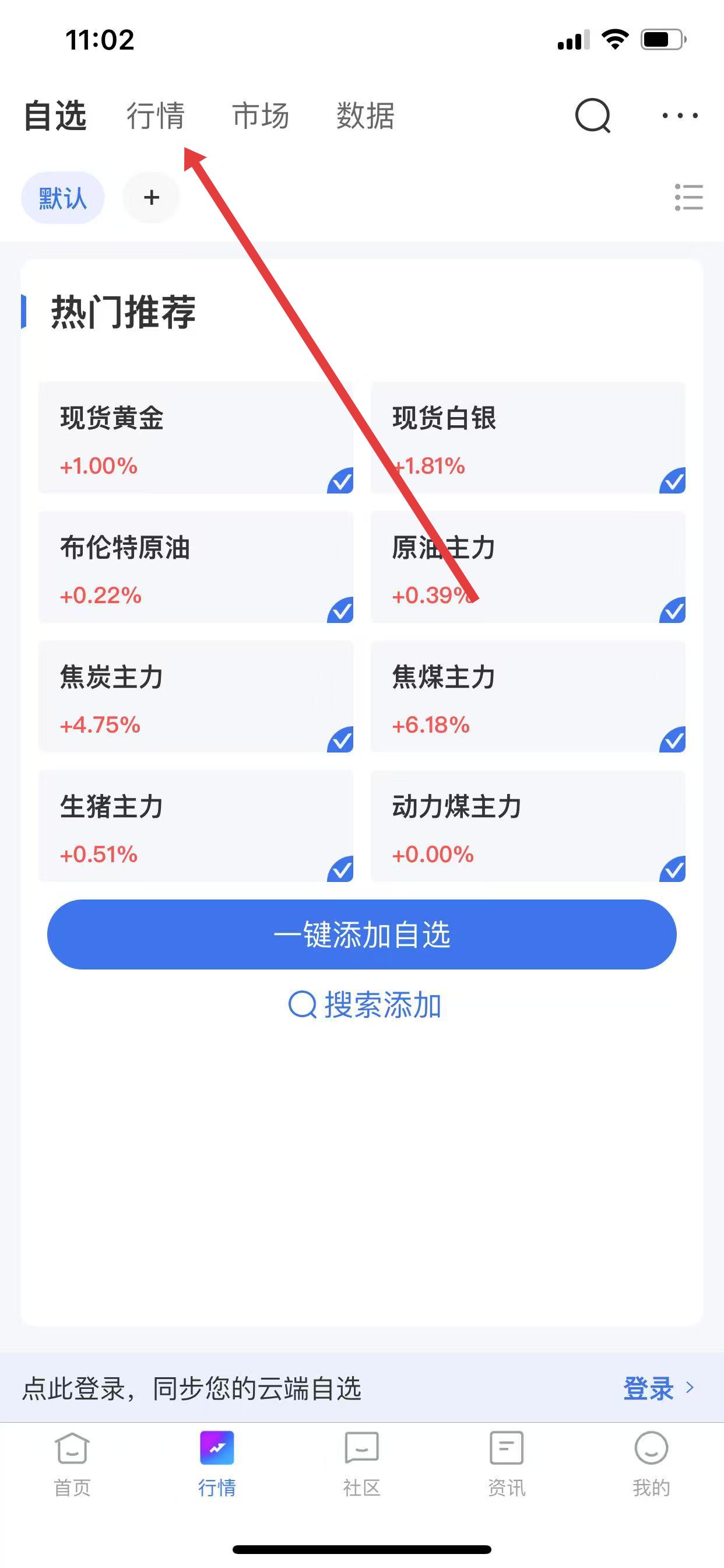3、利用自選管理功能:不斷調(diào)整和管理自己的自選列表,把新關(guān)注的品種及時(shí)添加進(jìn)去。同時(shí),通過登錄賬號(hào),同步云端自選,不同設(shè)備上查看關(guān)注的行情。