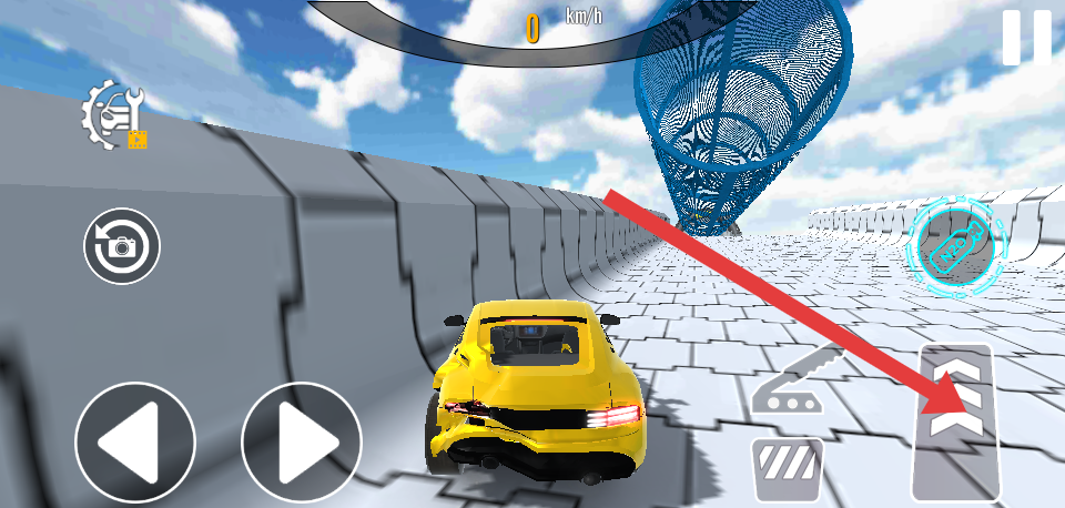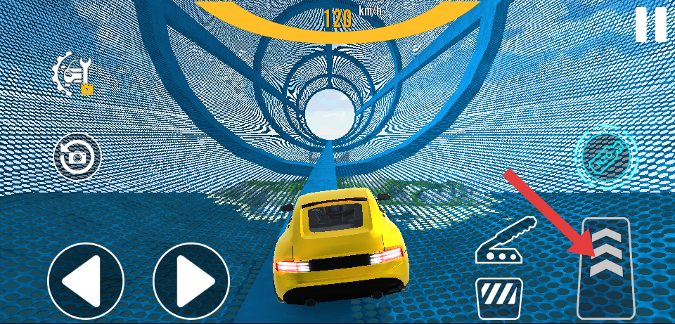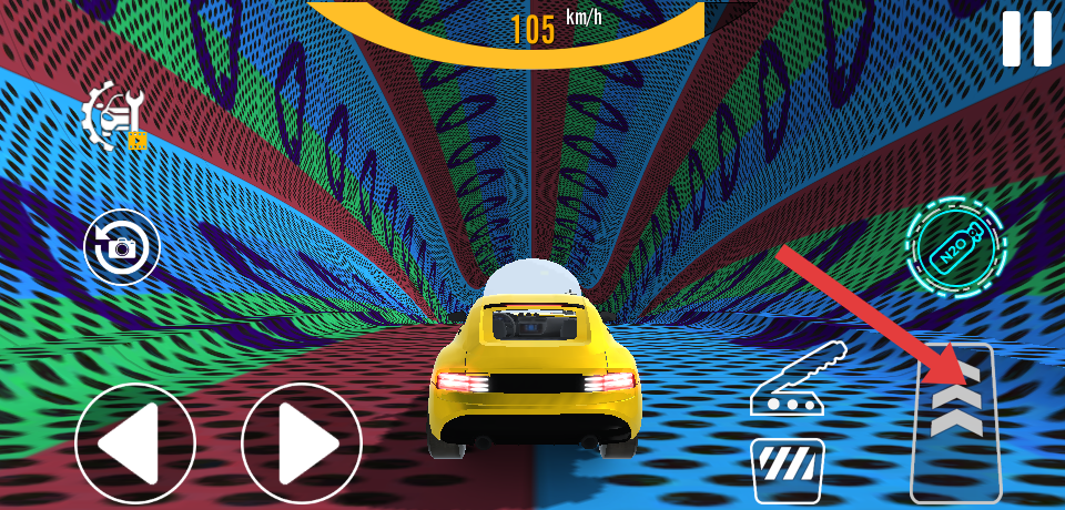 1、進入炫彩隧道,緊盯右側加速按鍵多層箭頭標識,遇到彩色波紋路段,及時點擊觸發(fā)短距爆發(fā)。