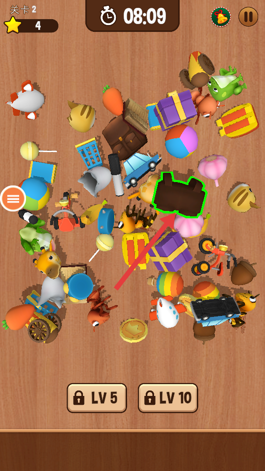 1、物品觀察技巧:優(yōu)先觀察畫面中體積較大或顏色鮮艷的物品,這類物品視覺辨識度更高,可快速找到相同配對完成初步消除,為后續(xù)處理密集區(qū)域物品騰出觀察空間。