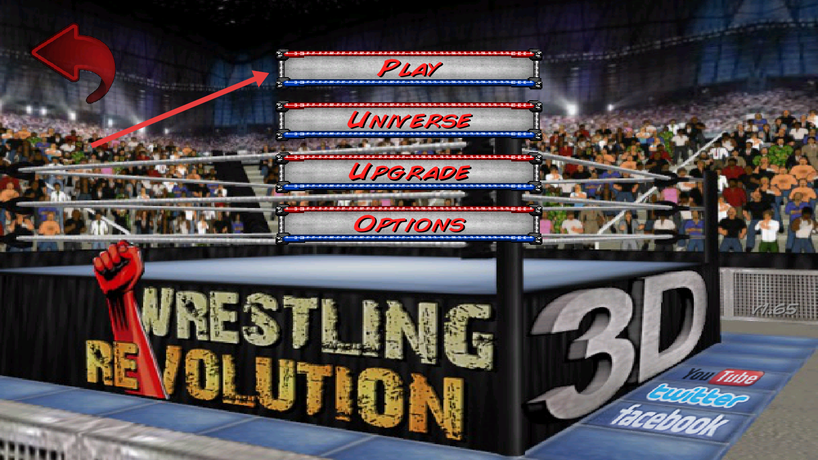 1、在WRESTLING REVOLUTION3D主界面,點(diǎn)擊PLAY進(jìn)入摔跤比賽,選擇角色WHACK-AX參戰(zhàn)。