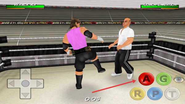 2、進(jìn)入擂臺,用左側(cè)方向鍵控制角色移動,靠近對手Coach Emerson,準(zhǔn)備發(fā)起攻擊。