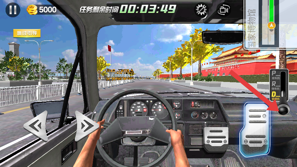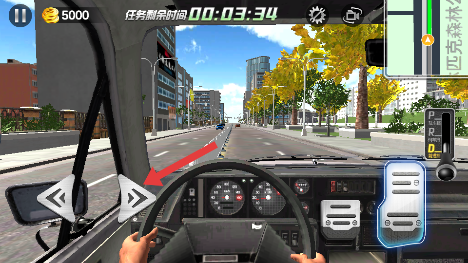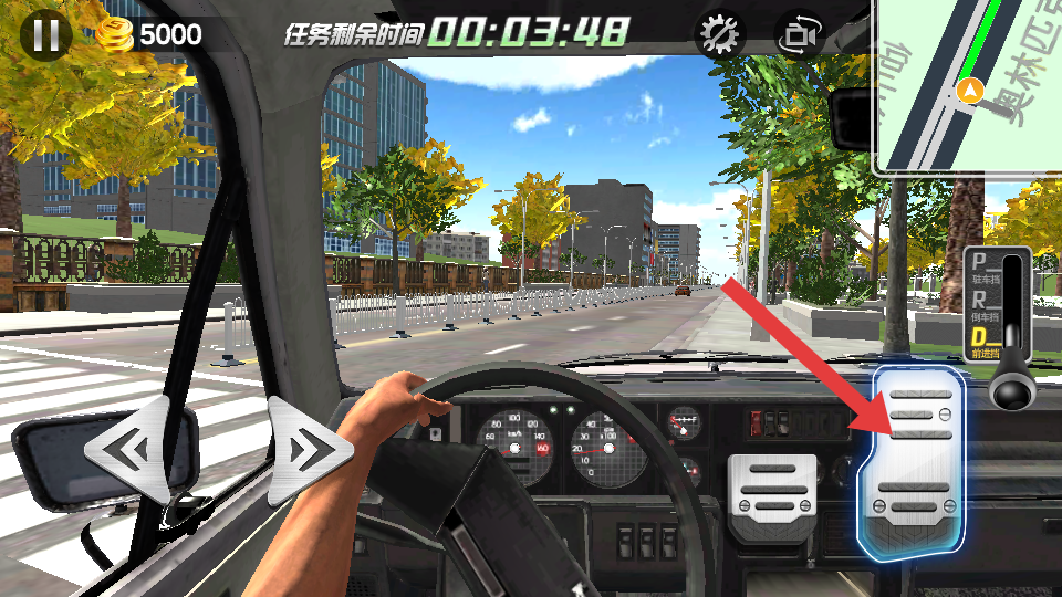 1、駕駛的操作,借助左右箭頭控制行駛方向,利用右側(cè)踏板操控油門與剎車,依照右上角地圖導(dǎo)航行駛。