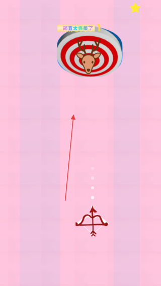 2、松開(kāi)手指發(fā)射箭支,盡量讓箭射中上方帶有鹿頭圖案的靶心,若射中會(huì)出現(xiàn)簡(jiǎn)直太完美了提示。