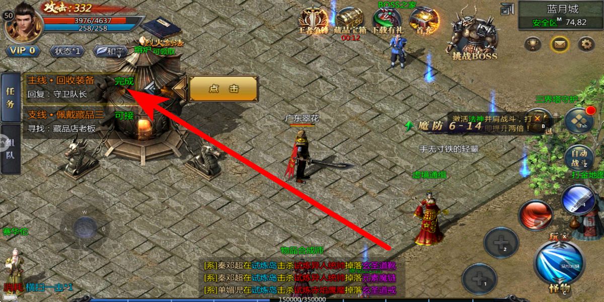 1、提交主線任務(wù)點(diǎn)擊任務(wù)欄回收裝備完成提示,提交任務(wù)成果領(lǐng)取獎(jiǎng)勵(lì),解鎖新主線或支線任務(wù),為角色成長(zhǎng)積累資源與經(jīng)驗(yàn)。