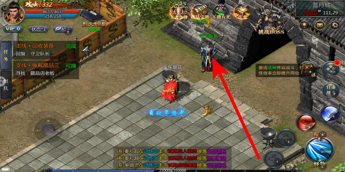 2、對(duì)接守衛(wèi)隊(duì)長(zhǎng)跟隨自動(dòng)尋路功能前往守衛(wèi)隊(duì)長(zhǎng)處,與其交互觸發(fā)新劇情,獲取區(qū)域動(dòng)態(tài)與任務(wù)指引,推進(jìn)情節(jié)故事線發(fā)展。