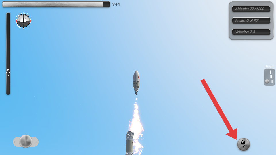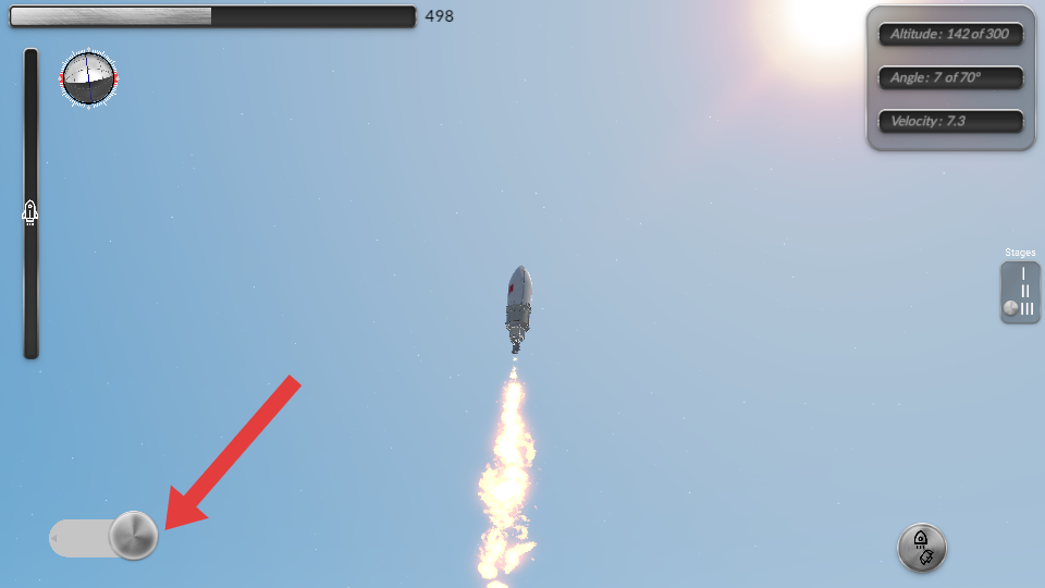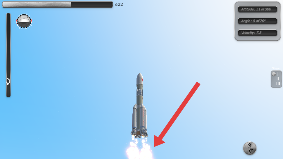3、高度達(dá)到300、角度達(dá)到70°且速度穩(wěn)定,頂部進(jìn)度條走完,模擬發(fā)射任務(wù)成功,還原航天發(fā)射參數(shù)機(jī)制。