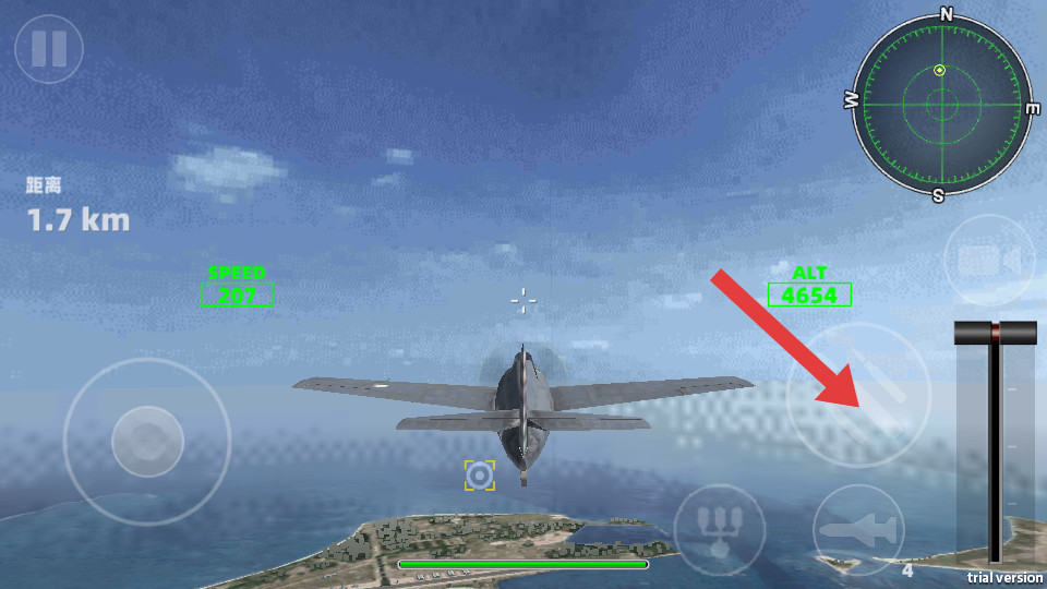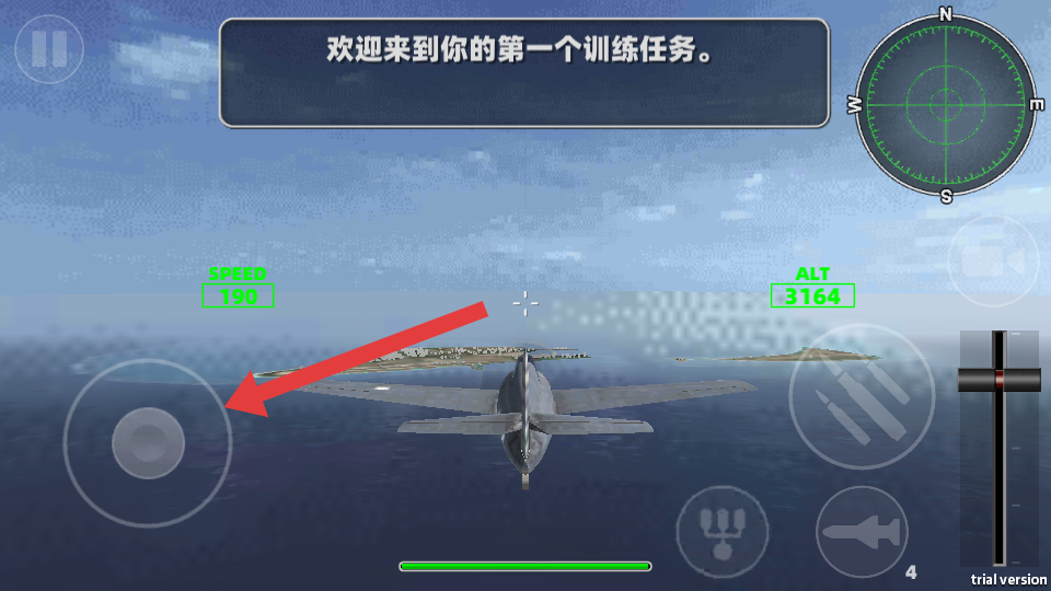 1、參數(shù)控制,借助左側(cè)的虛擬搖桿調(diào)整飛行姿態(tài),維持著速度如190變?yōu)?07再到172、高度的穩(wěn)定。