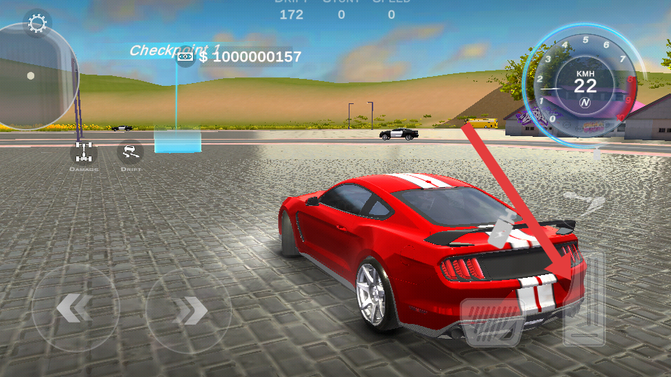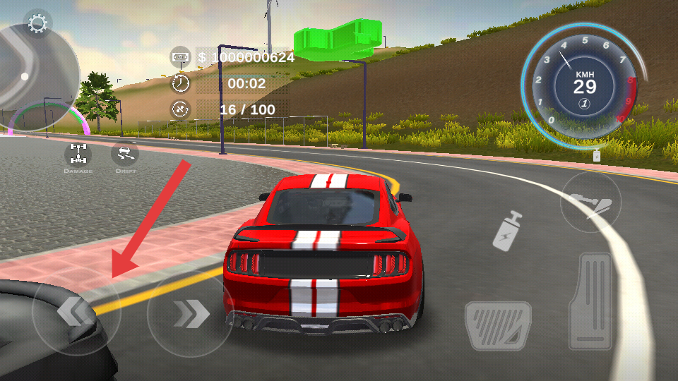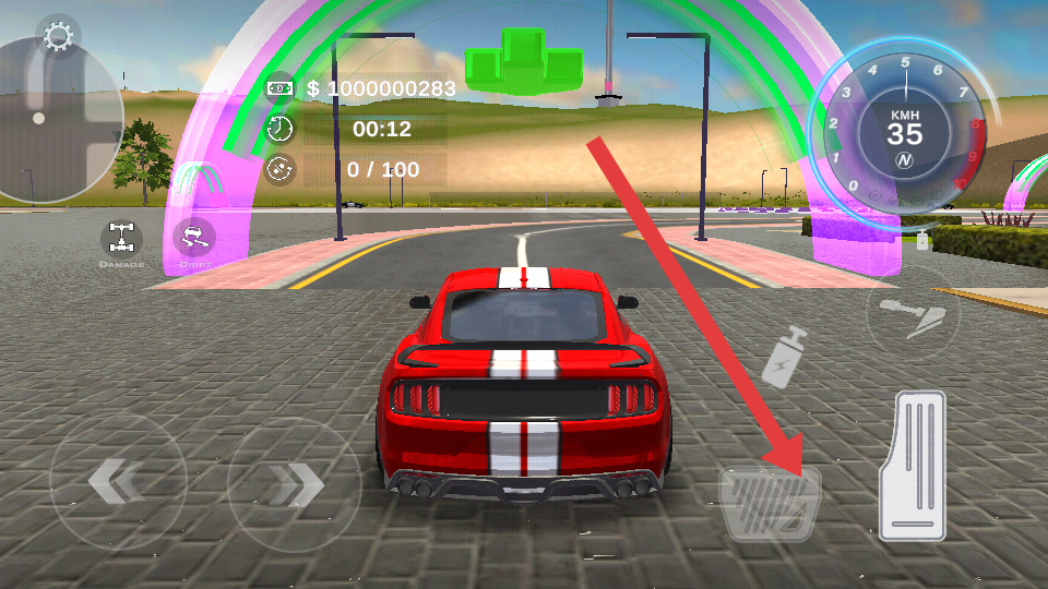 1、底部左右按鍵控制轉(zhuǎn)向,油門鍵箭頭指向?qū)崿F(xiàn)提速,特技鍵觸發(fā)漂移加速,任務(wù)指引點擊對應(yīng)按鍵操作。