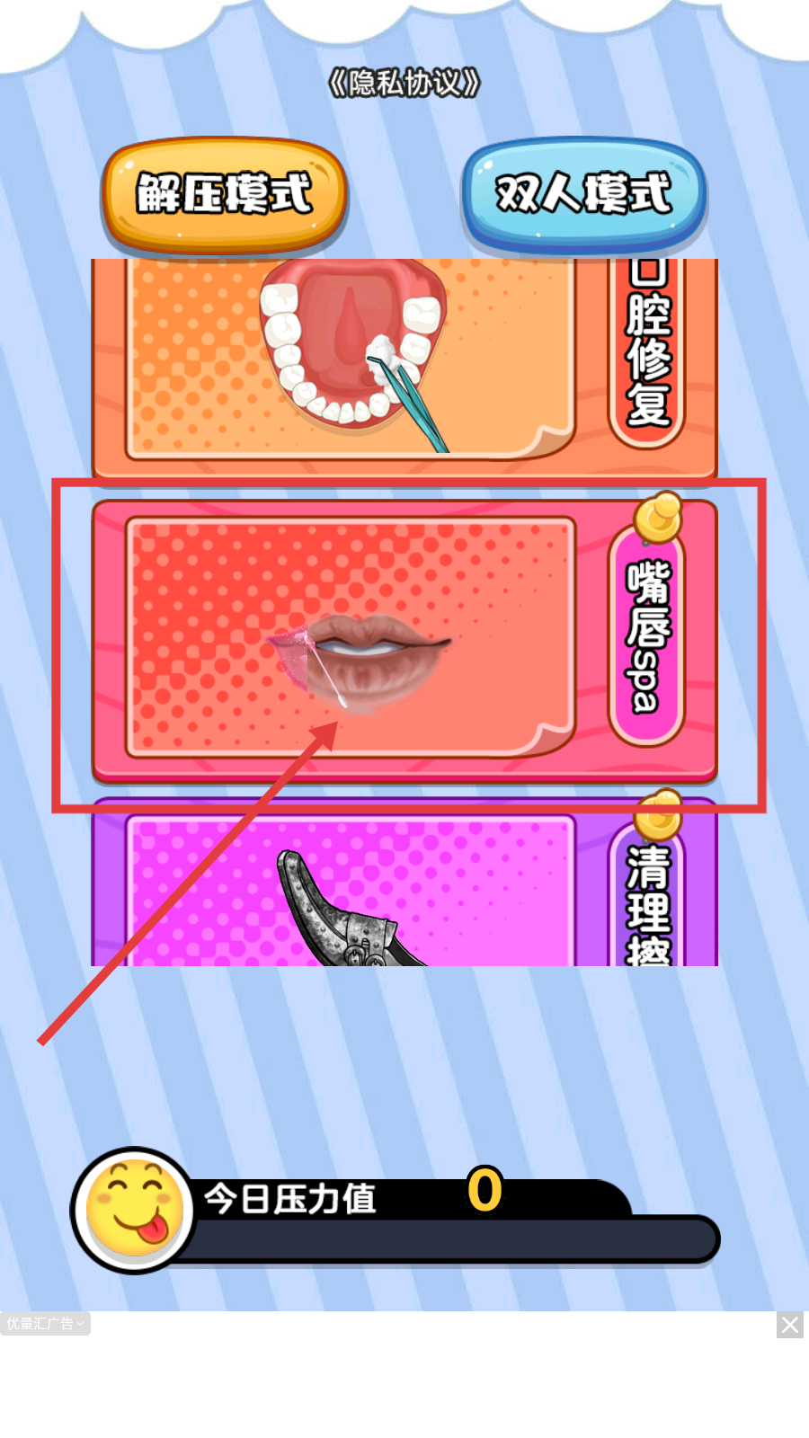 1、進(jìn)入【解壓模式】,選擇【嘴唇spa】任務(wù),開啟唇部護(hù)理的解壓流程。