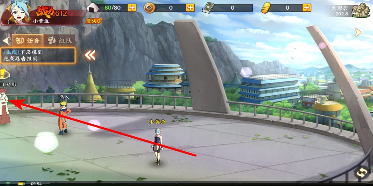2、主線(xiàn)任務(wù)接取進(jìn)入主城火影巖場(chǎng)景,找到火影NPC與之對(duì)話(huà),接取到主線(xiàn)任務(wù)下忍報(bào)到訓(xùn)練任務(wù),跟隨任務(wù)指引逐步推進(jìn)劇情,解鎖后續(xù)玩法與功能。