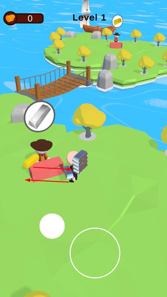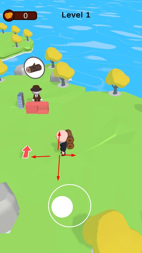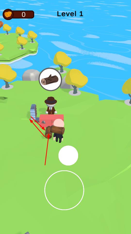 1、Level1場(chǎng)景中,通過虛擬搖桿操控角色移動(dòng),拾取原木并送往戴帽NPC處交付。