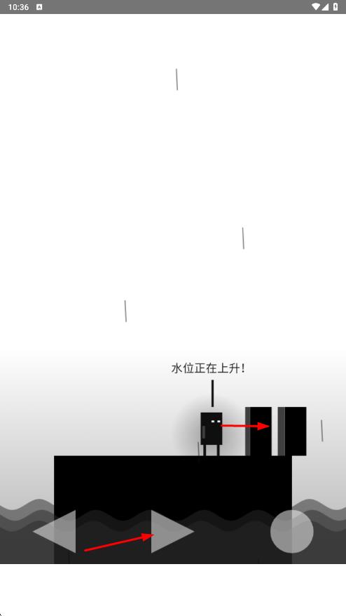 2、借助下方【方向鍵】操控角色移動,推動黑色方塊搭建平臺,應對【水位正在上升】的危機。