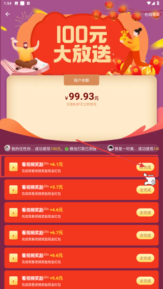 2、在活動(dòng)頁(yè)面,找到“看視頻獎(jiǎng)勵(lì)”任務(wù),點(diǎn)擊去完成按鈕,進(jìn)入視頻觀看界面。