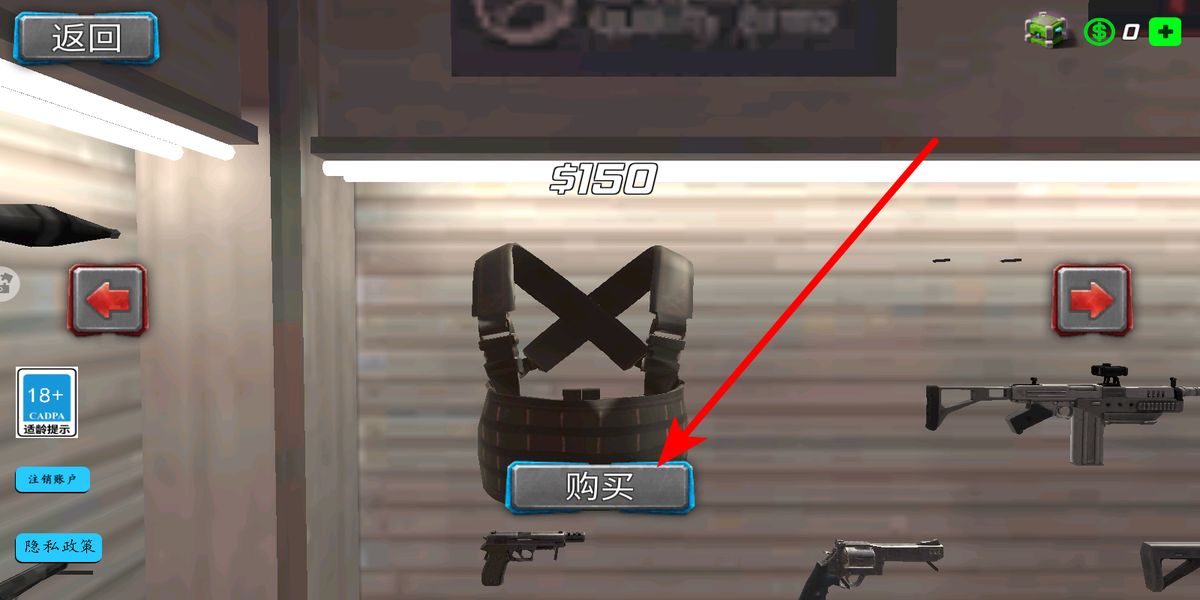 2、武器采購步驟進(jìn)入武器界面,瀏覽槍械背帶等道具,選中目標(biāo)物品后點(diǎn)擊購買按鈕,消耗貨幣獲取裝備,提升角色戰(zhàn)斗時(shí)的續(xù)航或攻擊能力。