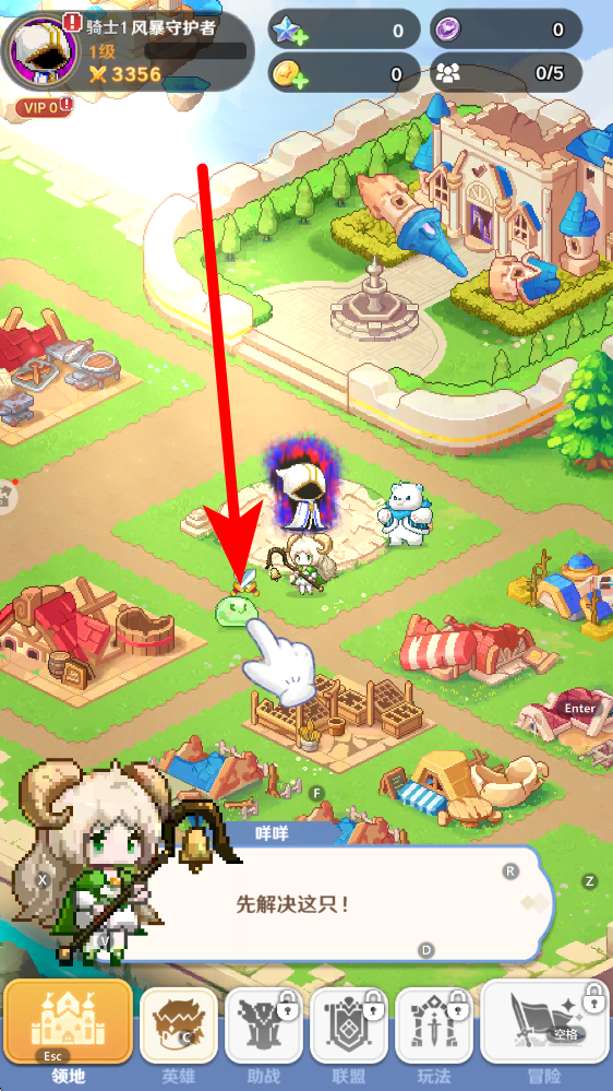 2、領(lǐng)地引導(dǎo)進(jìn)入領(lǐng)地界面后,跟隨指引點(diǎn)擊場(chǎng)景內(nèi)史萊姆目標(biāo),觸發(fā)戰(zhàn)斗教學(xué)環(huán)節(jié),熟悉角色交互與戰(zhàn)斗觸發(fā)方式,完成引導(dǎo)可獲取初期資源與成長(zhǎng)提示。