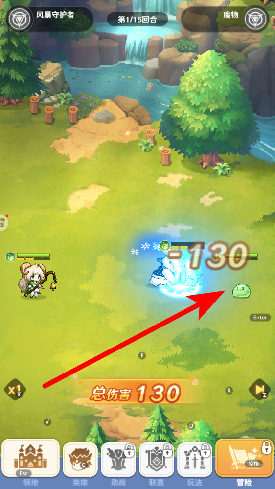 3、冒險(xiǎn)戰(zhàn)斗點(diǎn)擊底部冒險(xiǎn)按鈕進(jìn)入戰(zhàn)斗場(chǎng)景,操控英雄攻擊史萊姆等魔物,觀察傷害數(shù)值與戰(zhàn)斗流程,掌握基礎(chǔ)戰(zhàn)斗操作,積累冒險(xiǎn)經(jīng)驗(yàn)推動(dòng)前期成長(zhǎng)。