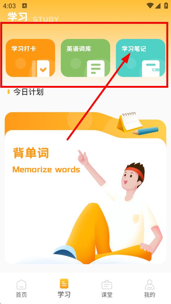 1、在學(xué)習(xí)頁(yè)面,點(diǎn)擊學(xué)習(xí)筆記,進(jìn)入筆記頁(yè)面。